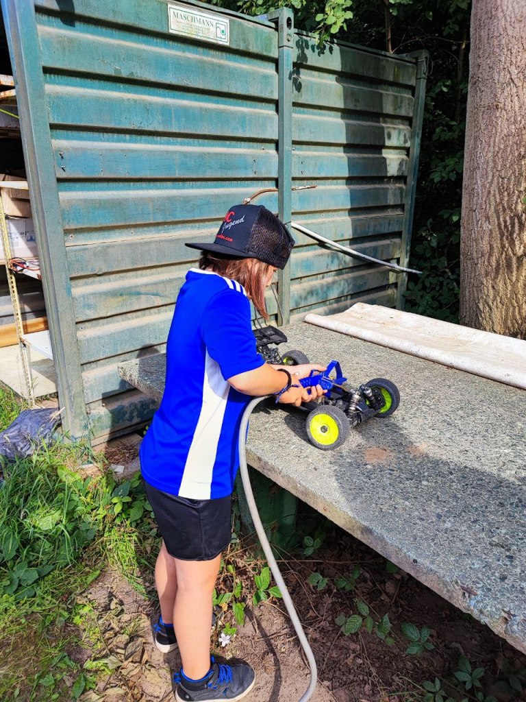 Zum Reinigen der Autos steht ein Kompressor zur Verfügung.